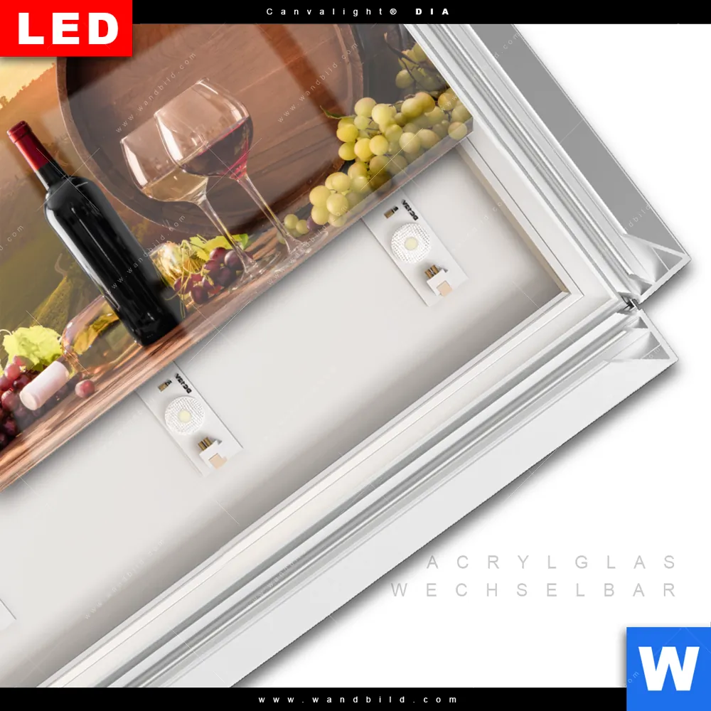 LED-Glasbild mit austauschbarem Acrylglas-Druck (Wechselbild)