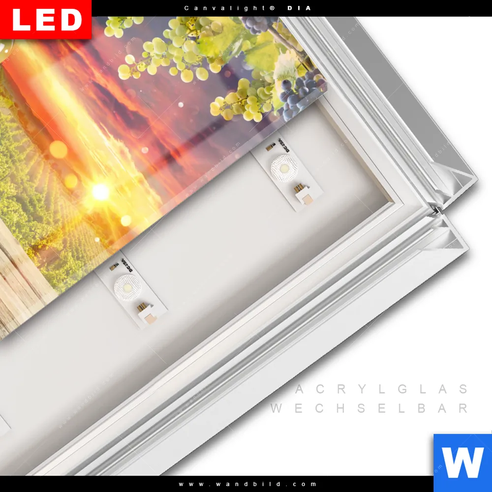 LED-Glasbild mit austauschbarem Acrylglas-Druck (Wechselbild)