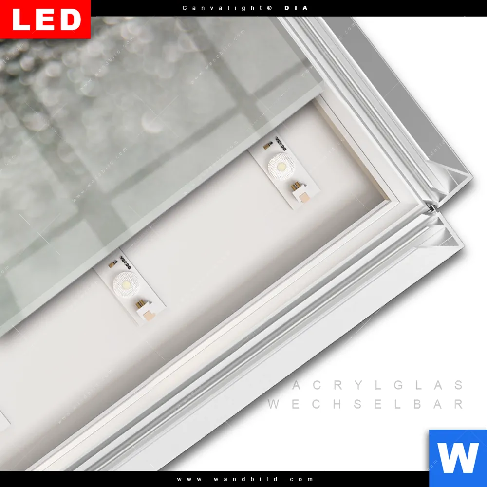 LED-Glasbild mit austauschbarem Acrylglas-Druck (Wechselbild)