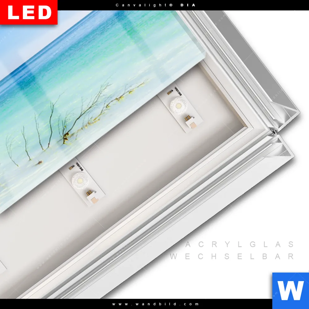 LED-Glasbild mit austauschbarem Acrylglas-Druck (Wechselbild)
