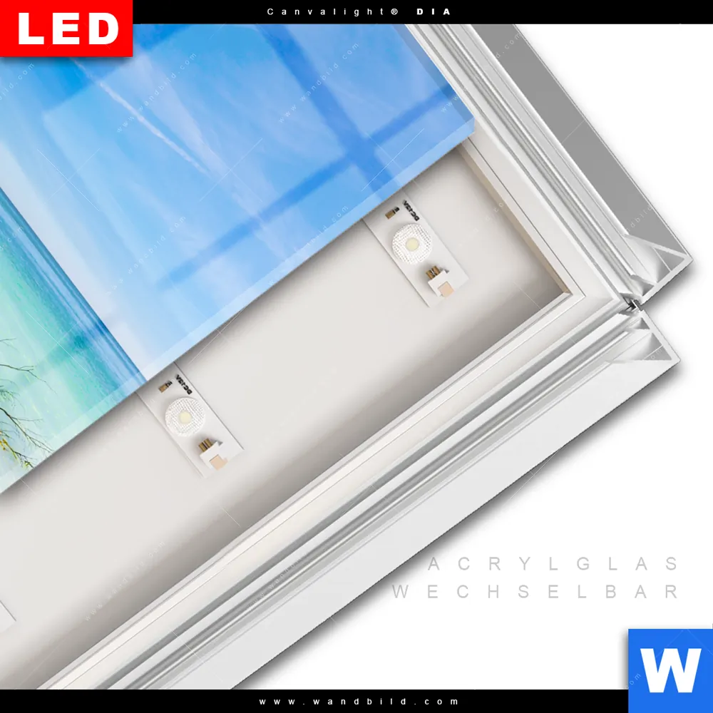 LED-Glasbild mit austauschbarem Acrylglas-Druck (Wechselbild)