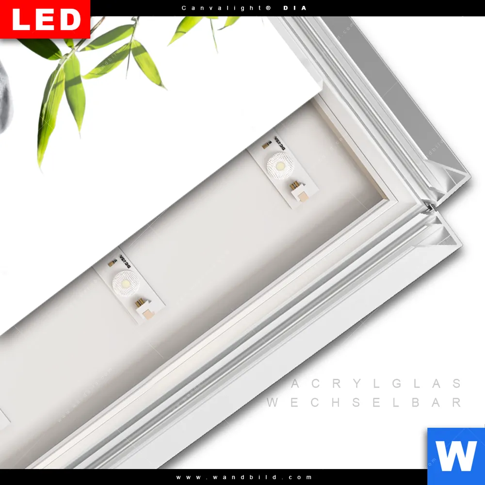LED-Glasbild mit austauschbarem Acrylglas-Druck (Wechselbild)