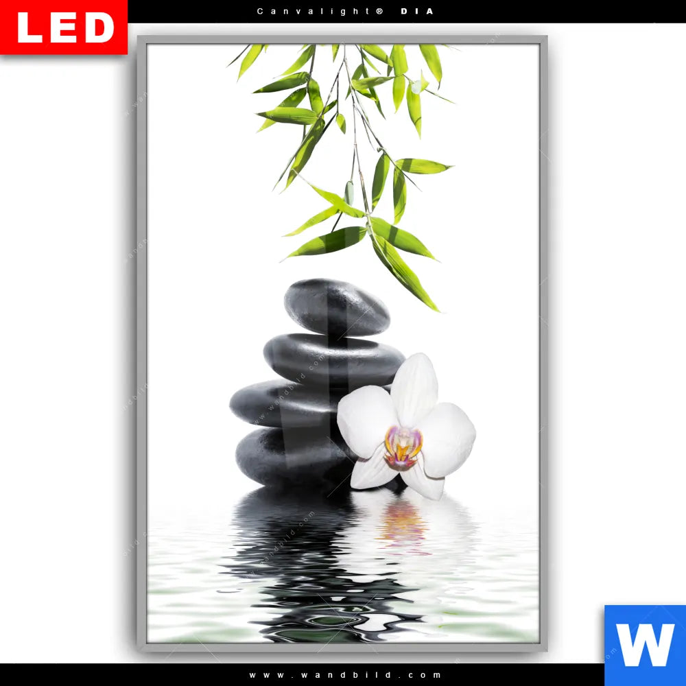 Canvalight® DIA Leuchtbild | Weiße Orchidee & Zensteine | Hochformat