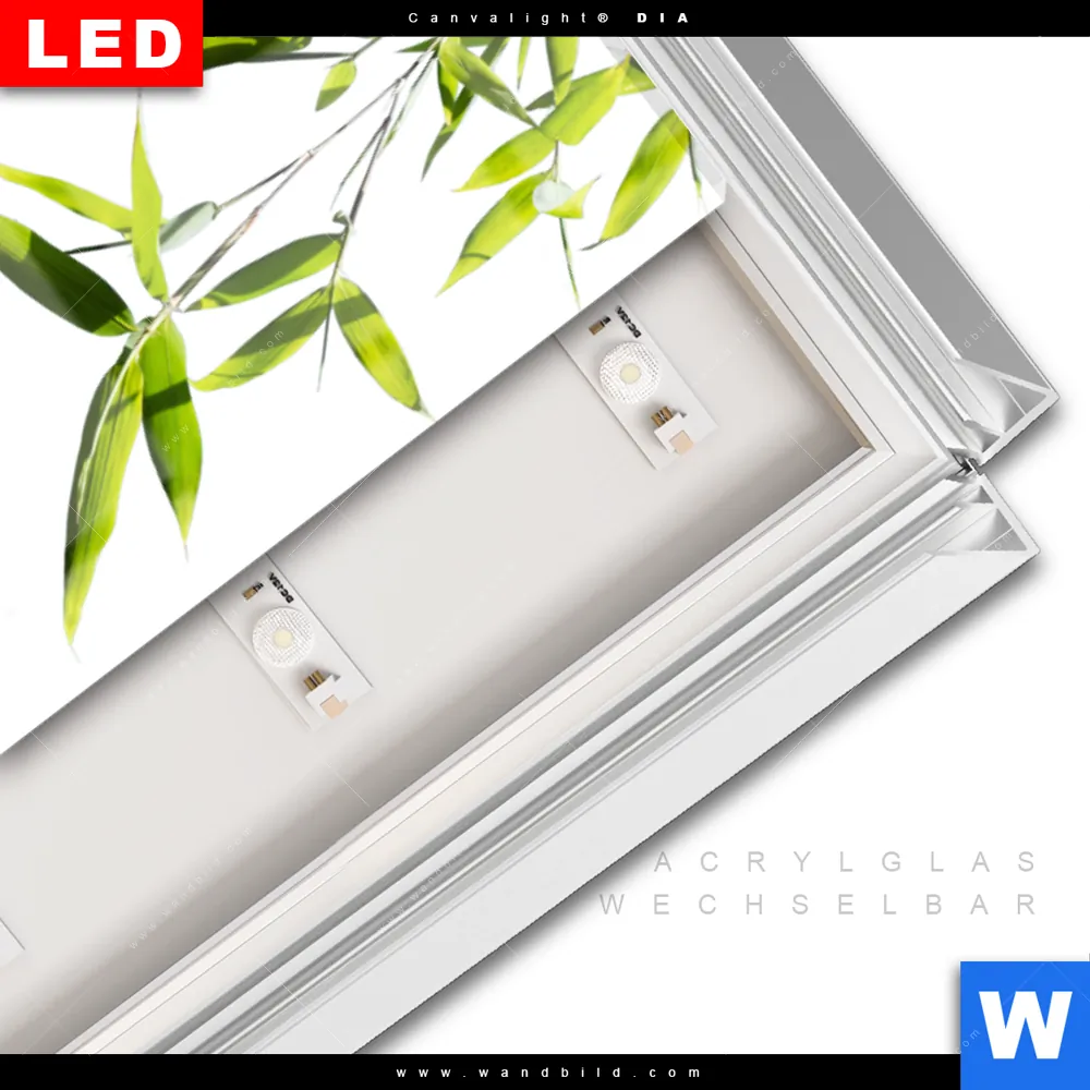 LED-Glasbild mit austauschbarem Acrylglas-Druck (Wechselbild)