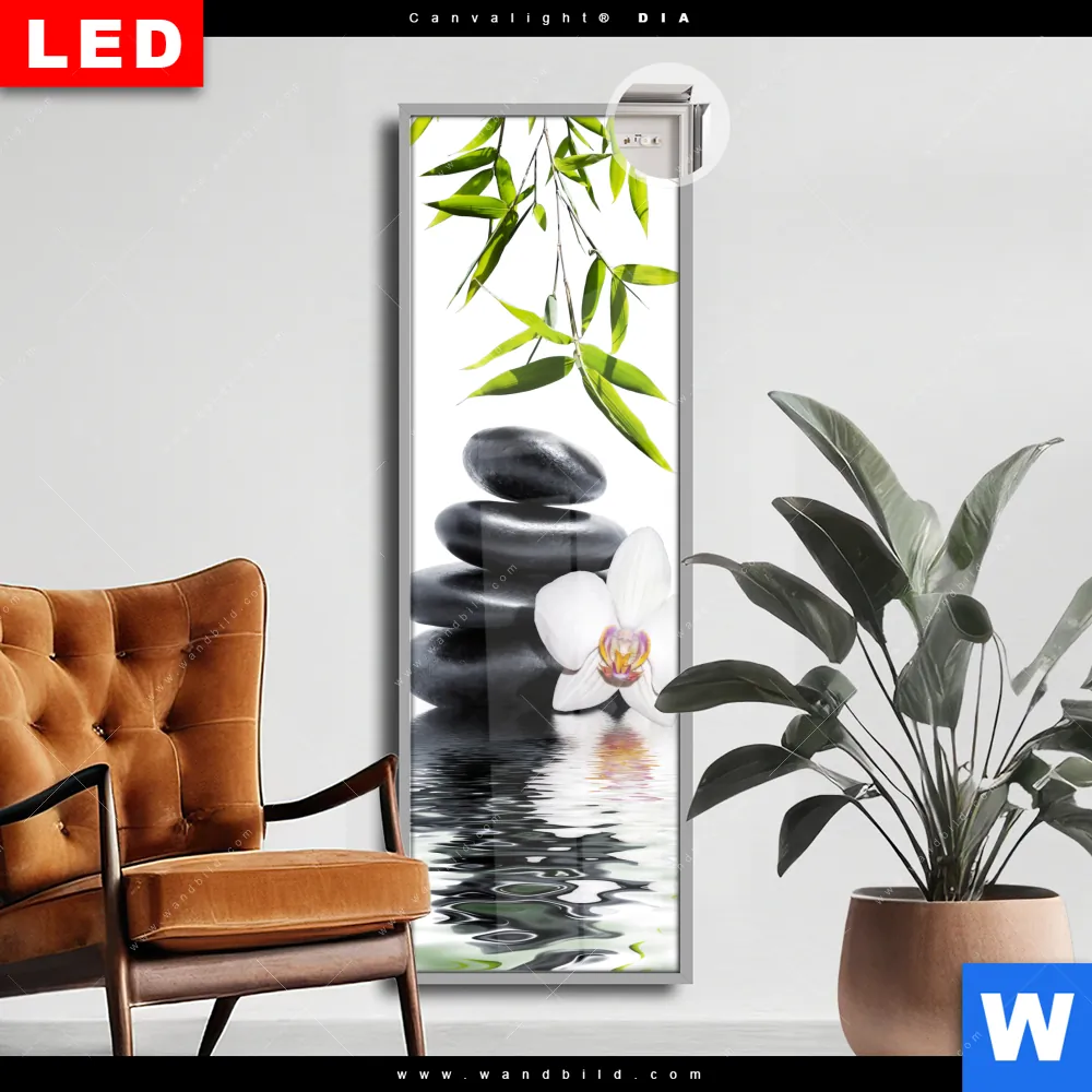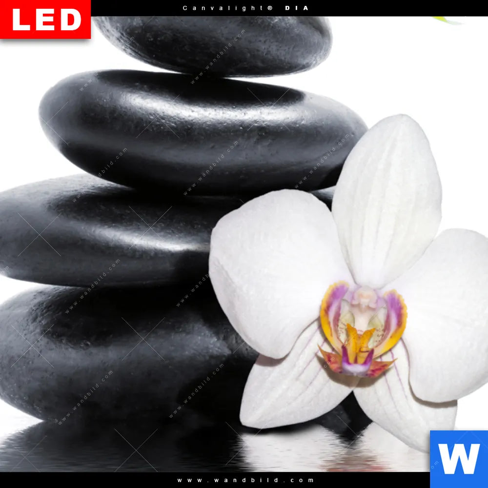 Canvalight® DIA Leuchtbild | Weiße Orchidee & Zensteine | Schmal