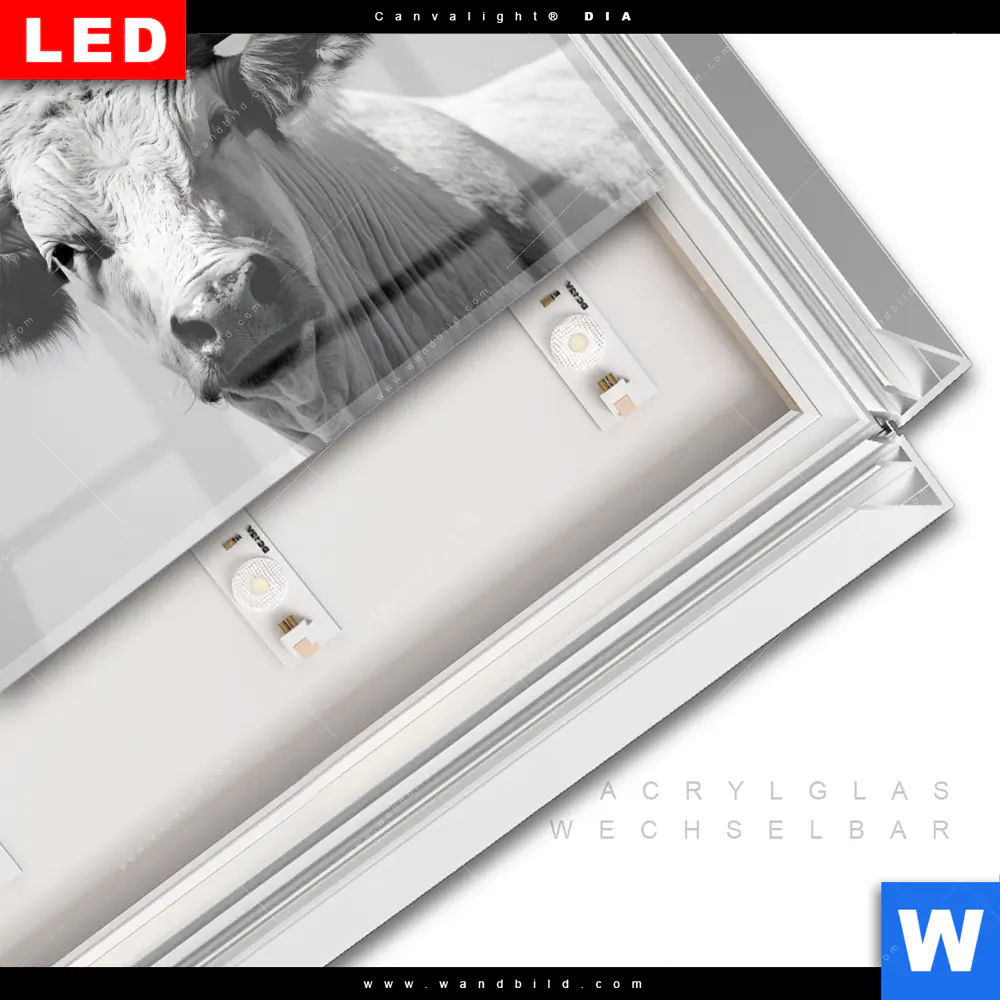 LED-Glasbild mit austauschbarem Acrylglas-Druck (Wechselbild)