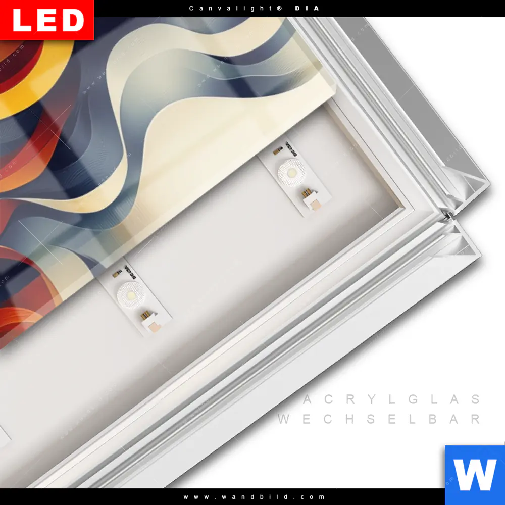LED-Glasbild mit austauschbarem Acrylglas-Druck (Wechselbild)