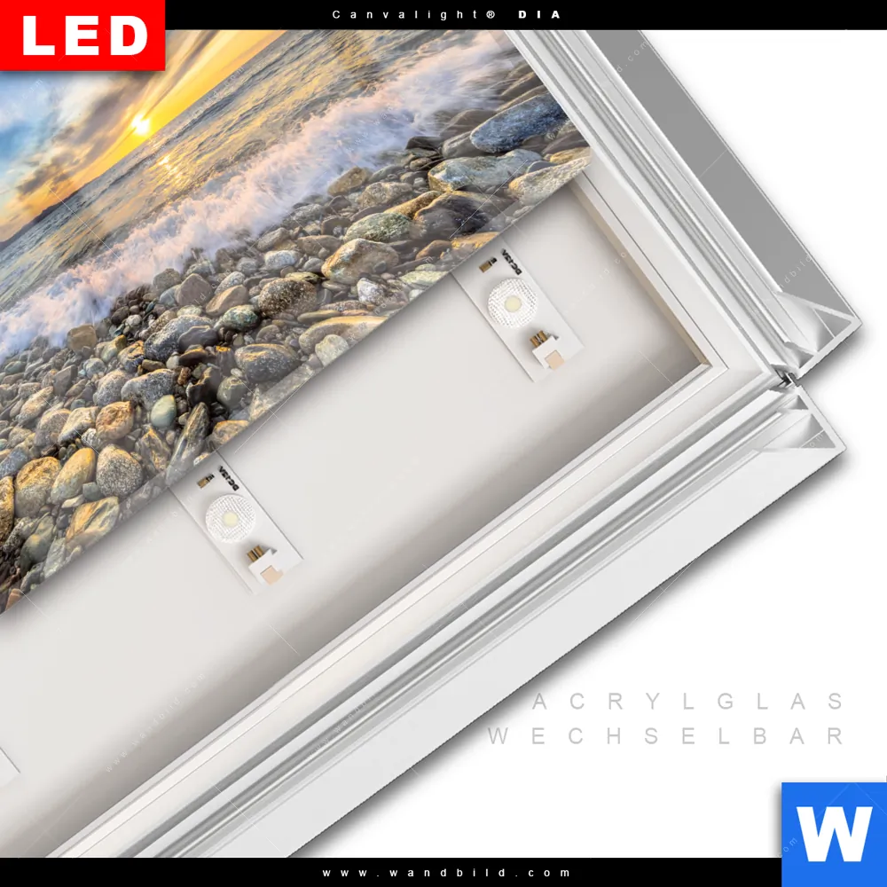 LED-Glasbild mit austauschbarem Acrylglas-Druck (Wechselbild)