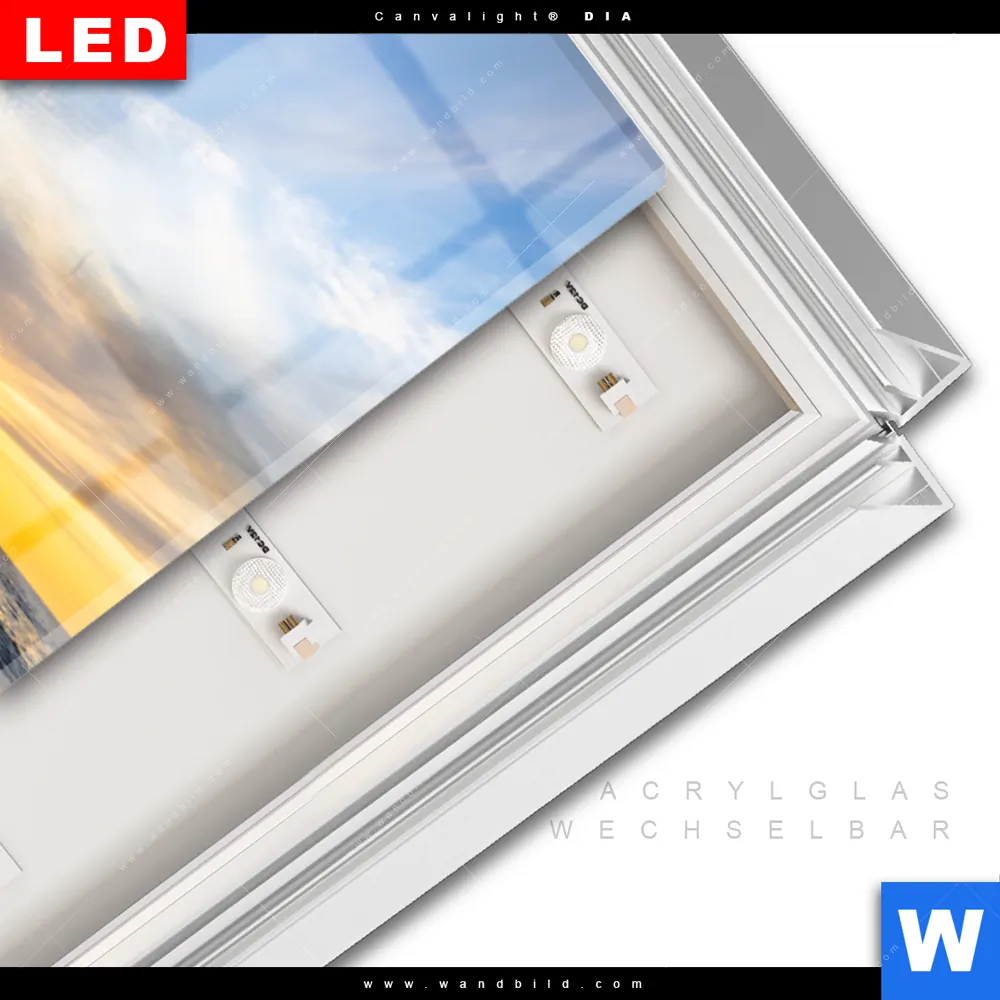 LED-Glasbild mit austauschbarem Acrylglas-Druck (Wechselbild)