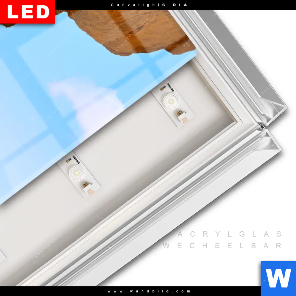 LED-Glasbild mit austauschbarem Acrylglas-Druck (Wechselbild)