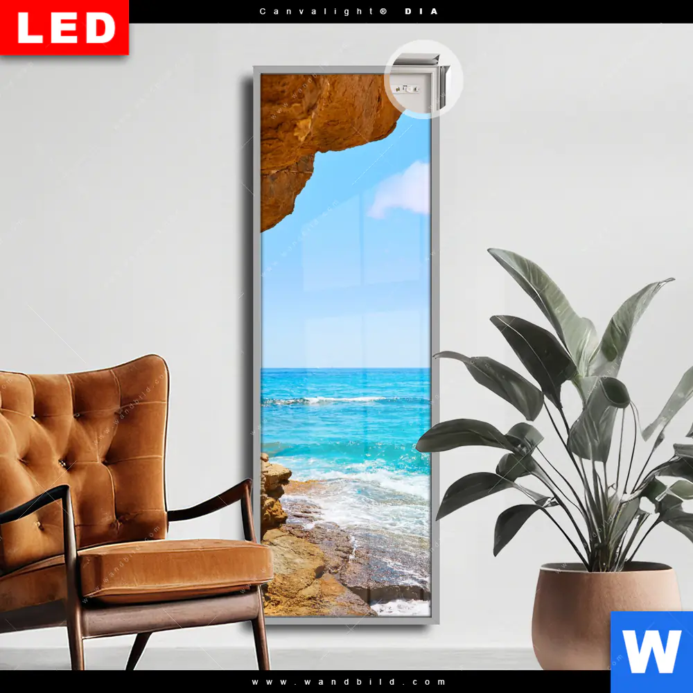Canvalight® DIA Leuchtbild | Wellenrauschen und Felsenklippe | Schmal