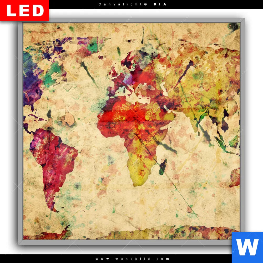 Canvalight® DIA Leuchtbild | Weltkarte Retro Bunt | Quadrat