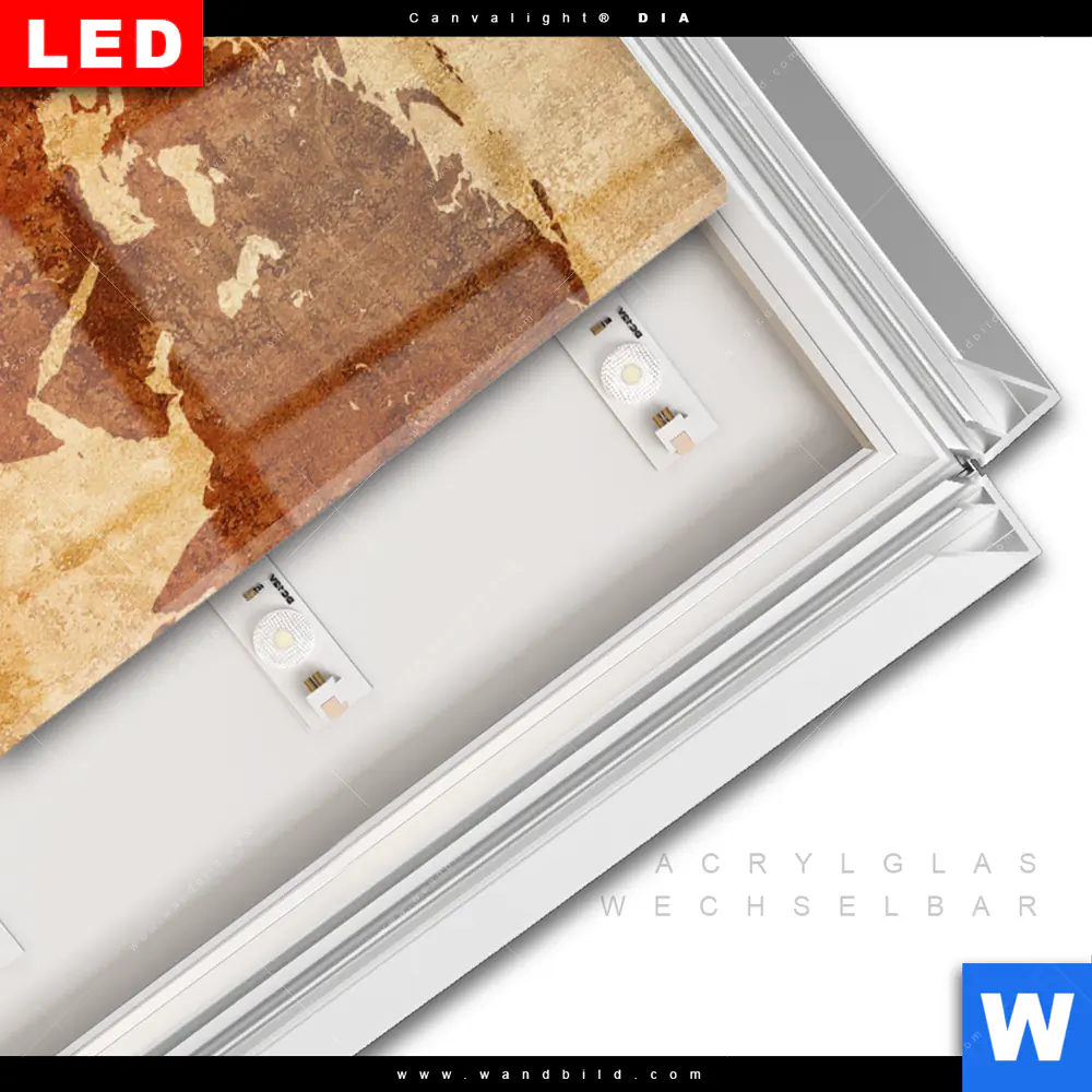 LED-Glasbild mit austauschbarem Acrylglas-Druck (Wechselbild)