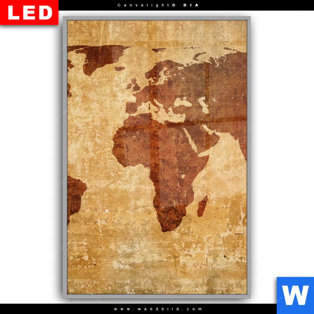 Canvalight® DIA Leuchtbild | Weltkarte Rostoptik | Hochformat