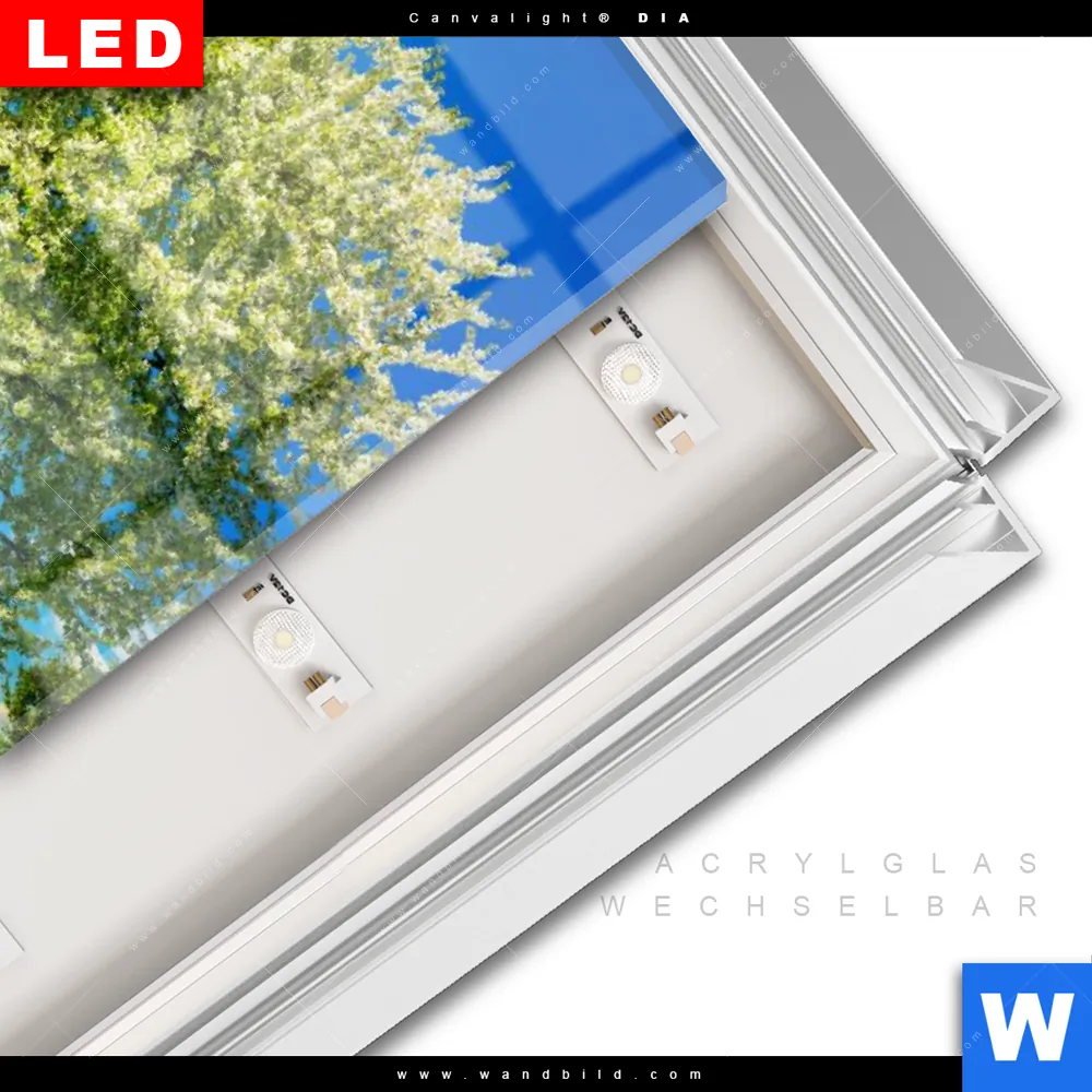 LED-Glasbild mit austauschbarem Acrylglas-Druck (Wechselbild)