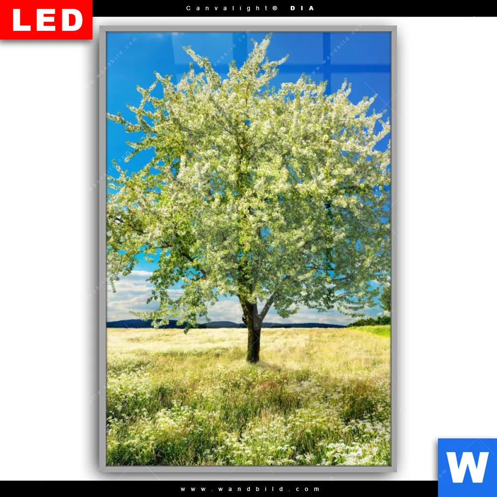 Canvalight® DIA Leuchtbild | Wiese mit blühendem Baum | Hochformat