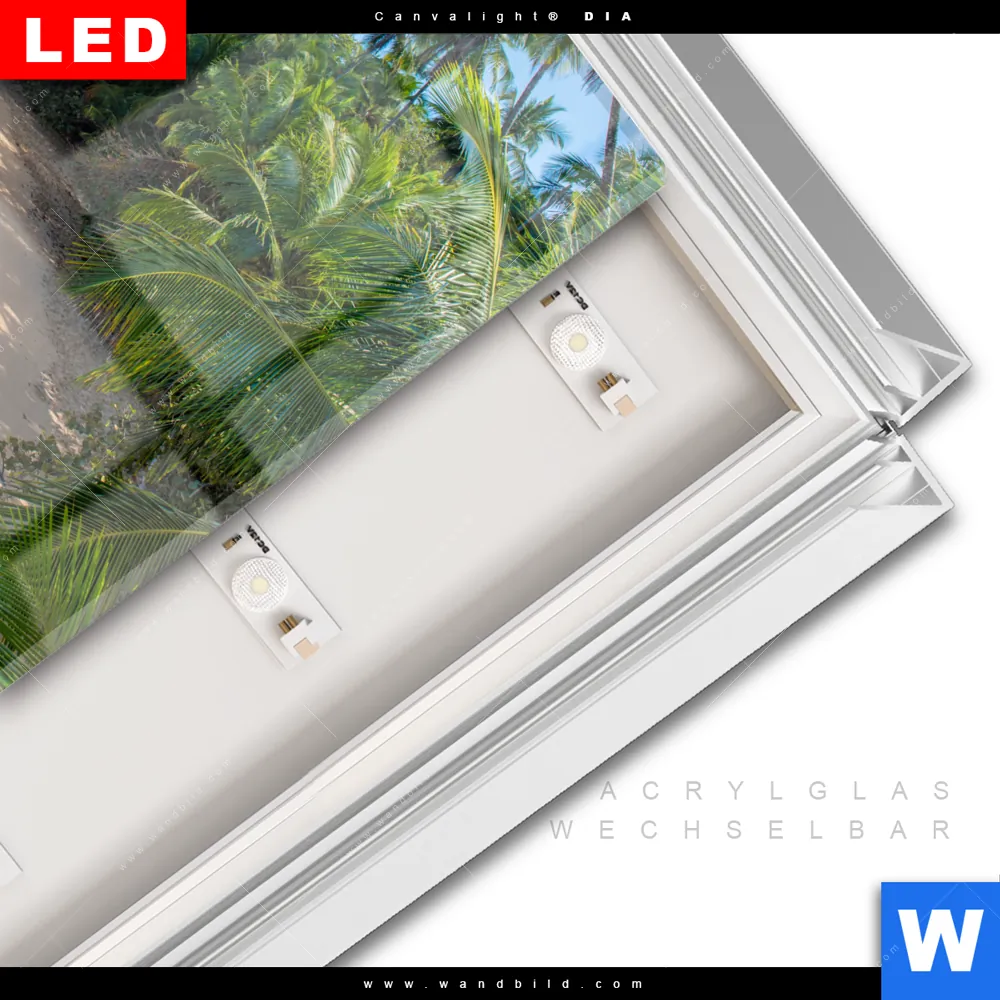 LED-Glasbild mit austauschbarem Acrylglas-Druck (Wechselbild)