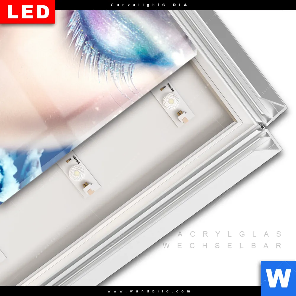 LED-Glasbild mit austauschbarem Acrylglas-Druck (Wechselbild)