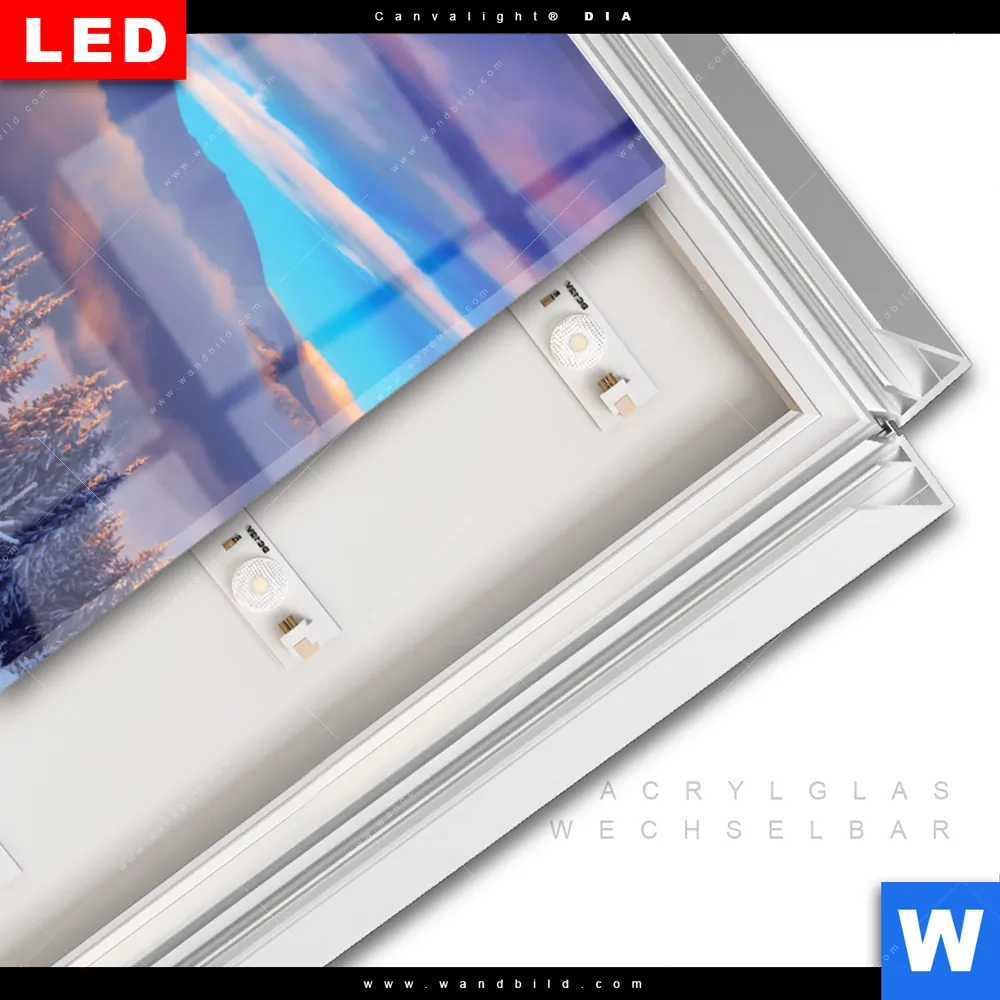 LED-Glasbild mit austauschbarem Acrylglas-Druck (Wechselbild)
