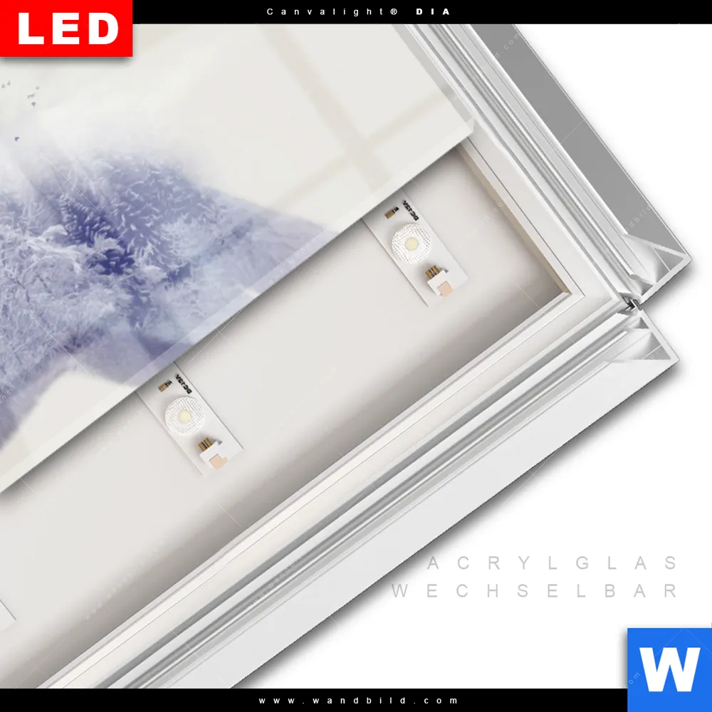 LED-Glasbild mit austauschbarem Acrylglas-Druck (Wechselbild)