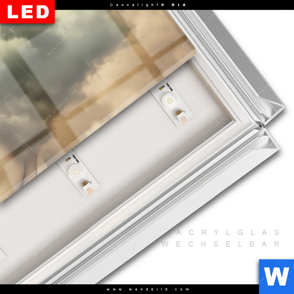 LED-Glasbild mit austauschbarem Acrylglas-Druck (Wechselbild)