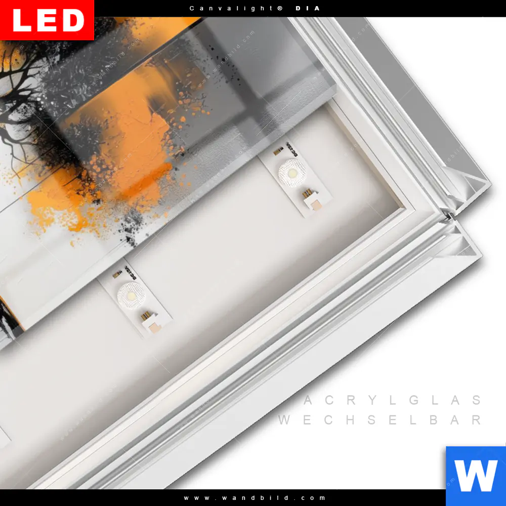 LED-Glasbild mit austauschbarem Acrylglas-Druck (Wechselbild)