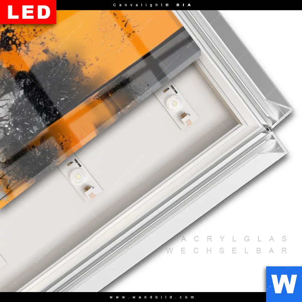 LED-Glasbild mit austauschbarem Acrylglas-Druck (Wechselbild)