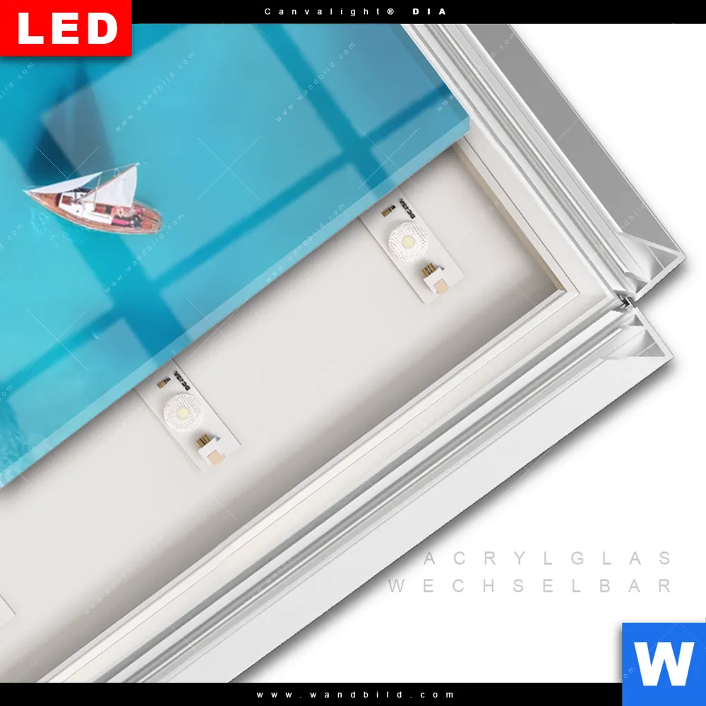 LED-Glasbild mit austauschbarem Acrylglas-Druck (Wechselbild)