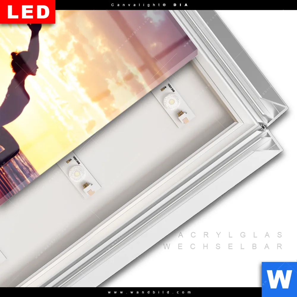 LED-Glasbild mit austauschbarem Acrylglas-Druck (Wechselbild)