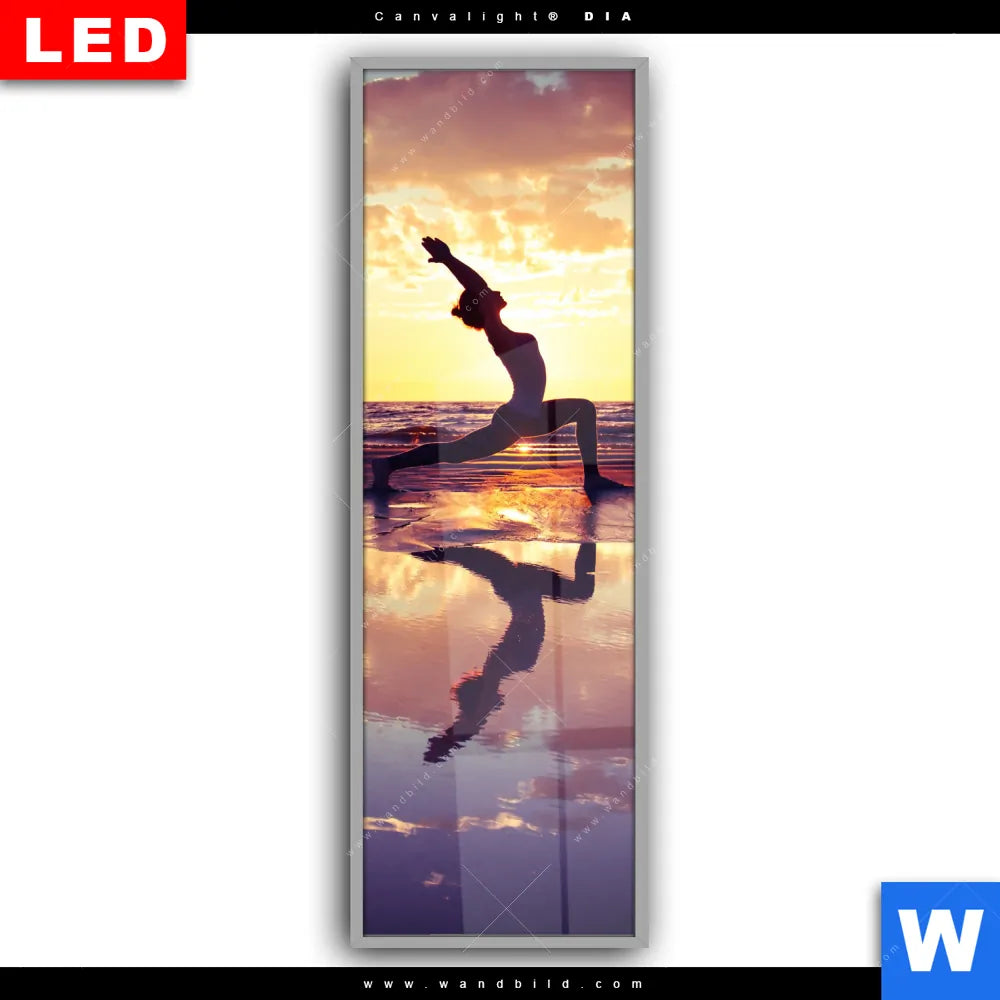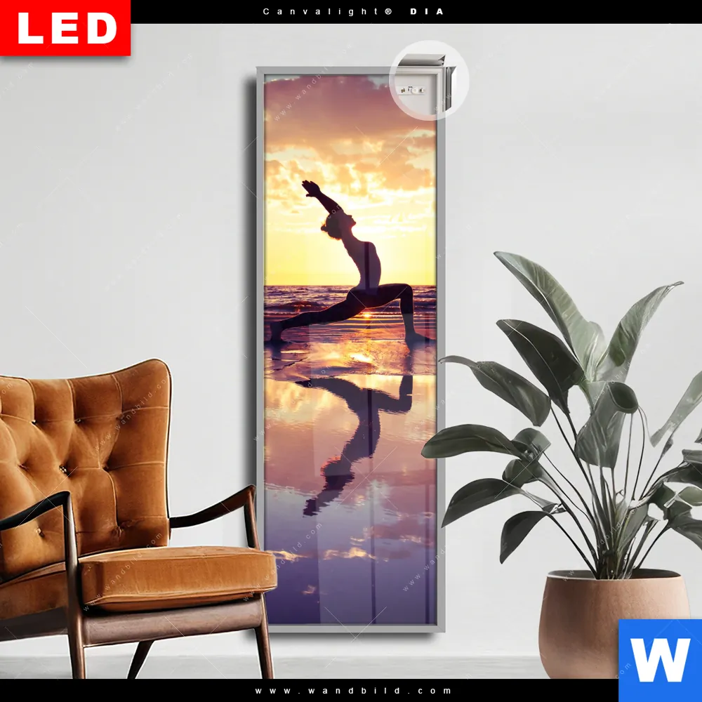 Canvalight® DIA Leuchtbild | Yoga am lila Strand | Schmal