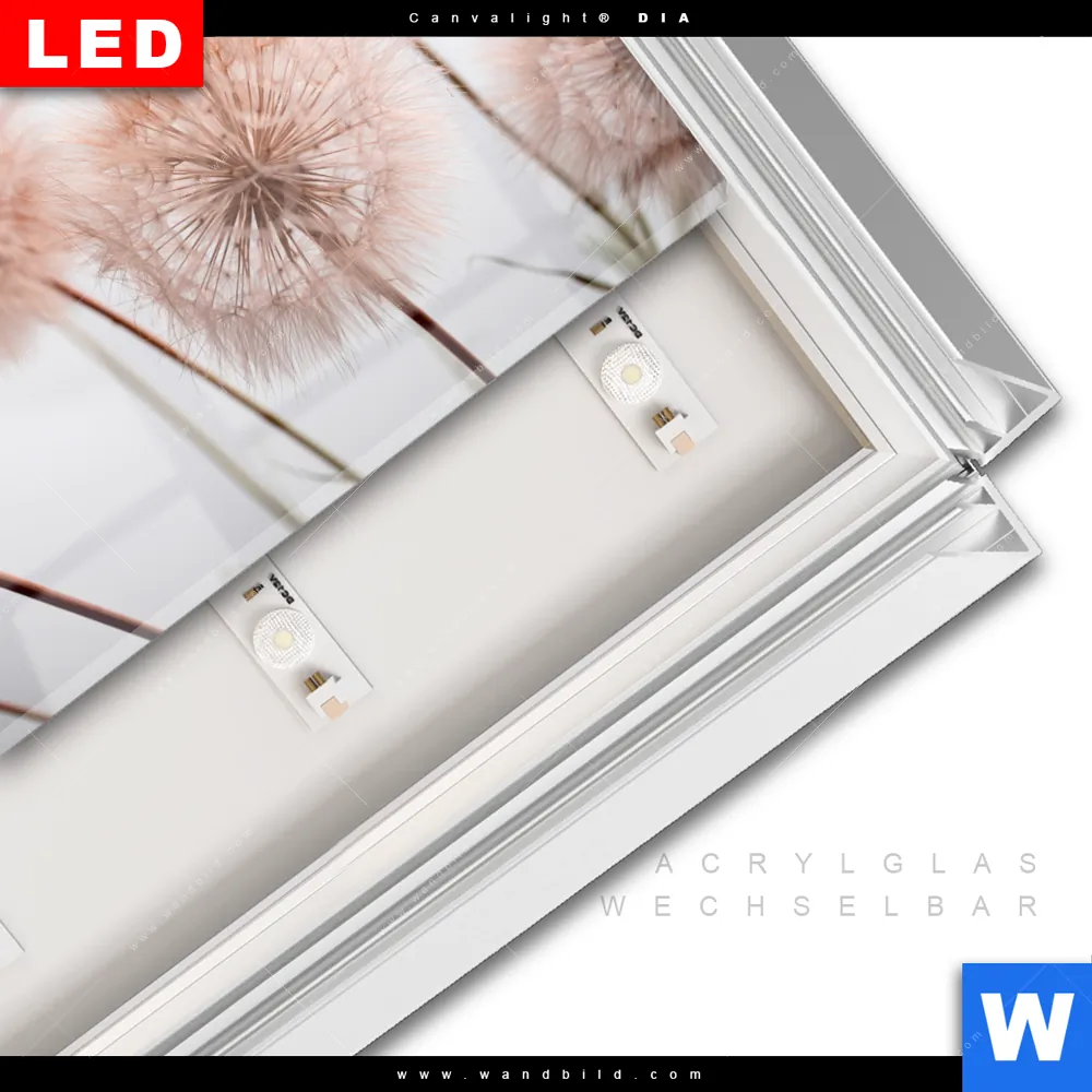 LED-Glasbild mit austauschbarem Acrylglas-Druck (Wechselbild)