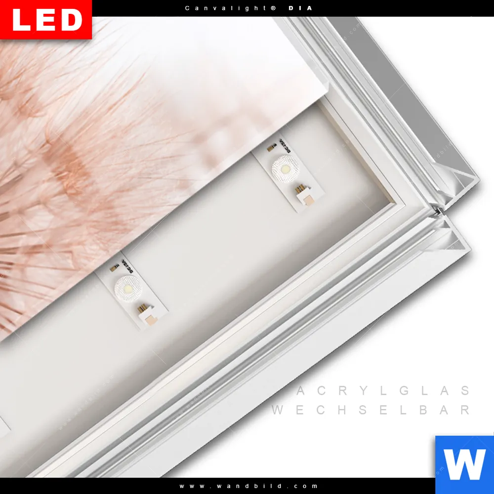 LED-Glasbild mit austauschbarem Acrylglas-Druck (Wechselbild)