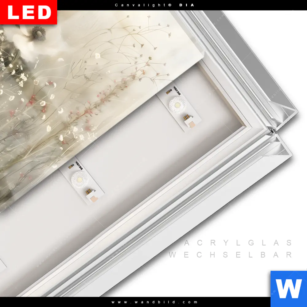 LED-Glasbild mit austauschbarem Acrylglas-Druck (Wechselbild)