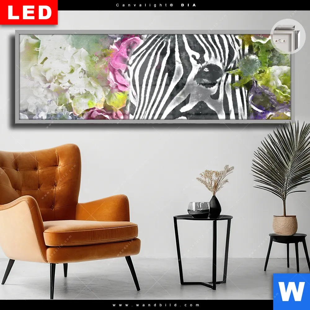 Canvalight® DIA Leuchtbild | Zebra & Blumen | Panorama
