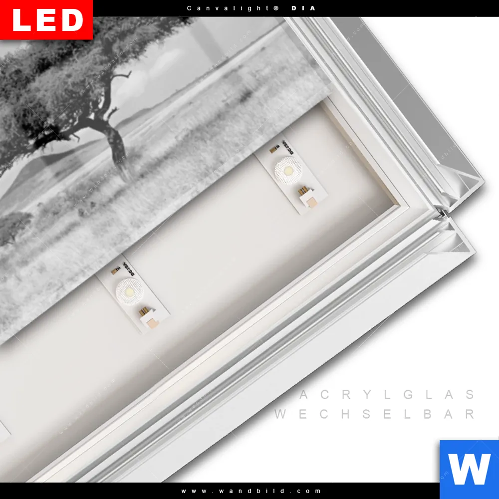 LED-Glasbild mit austauschbarem Acrylglas-Druck (Wechselbild)