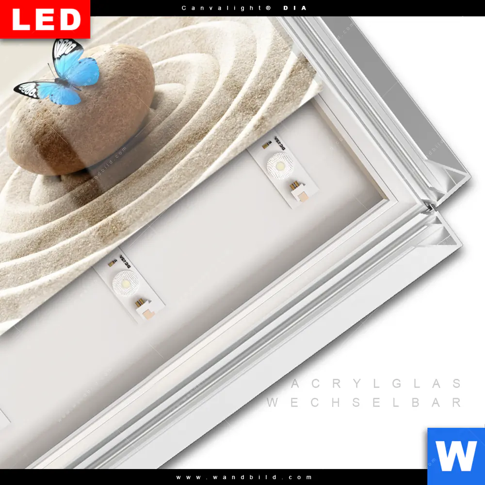 LED-Glasbild mit austauschbarem Acrylglas-Druck (Wechselbild)