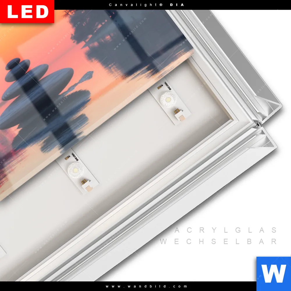 LED-Glasbild mit austauschbarem Acrylglas-Druck (Wechselbild)