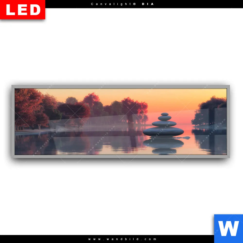 Canvalight® DIA Leuchtbild | Zen Steine & Sonnenuntergang | Panorama