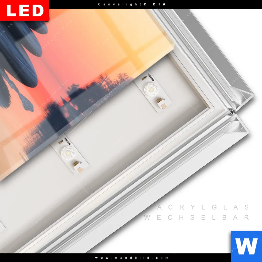 LED-Glasbild mit austauschbarem Acrylglas-Druck (Wechselbild)