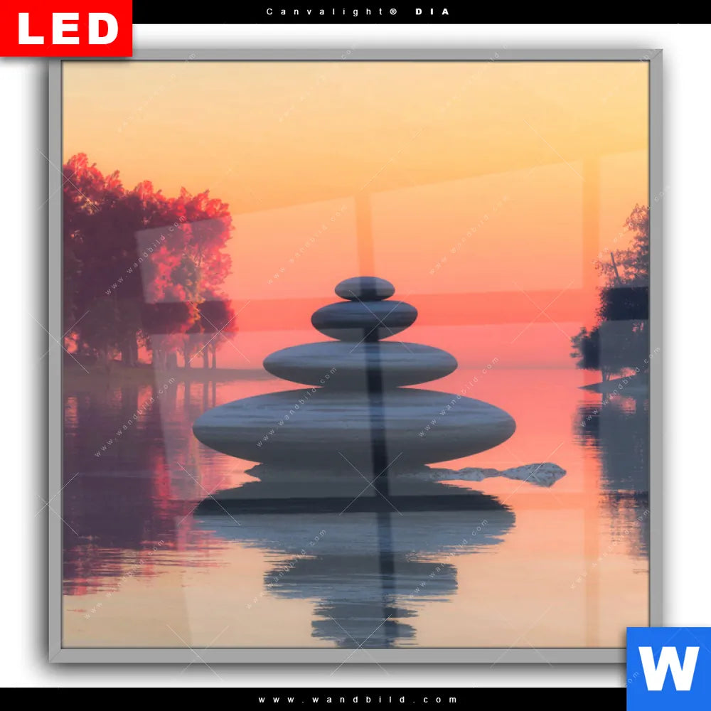 Canvalight® DIA Leuchtbild | Zen Steine & Sonnenuntergang | Quadrat