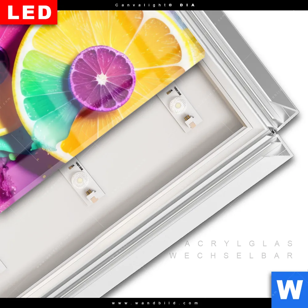 Canvalight® DIA Leuchtbild | Zitronen Neon Farbe | Schmal