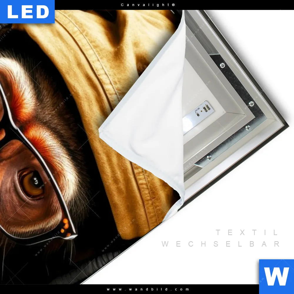 Canvalight® TEX Leuchtbild | Affe mit Kopfhörern & Brille | Hochformat