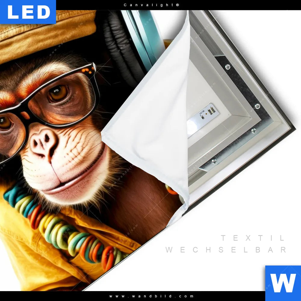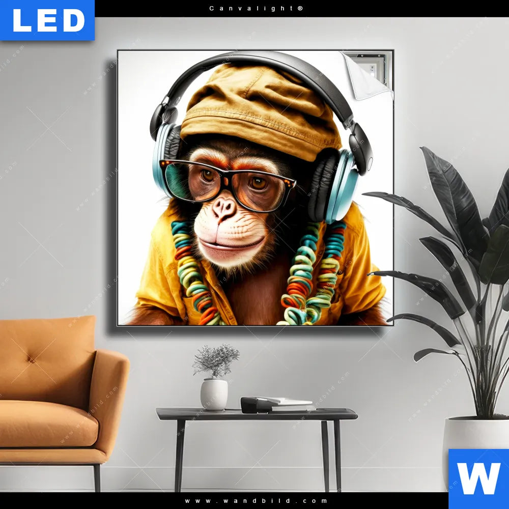 Canvalight® TEX Leuchtbild | Affe mit Kopfhörern & Brille | Quadrat