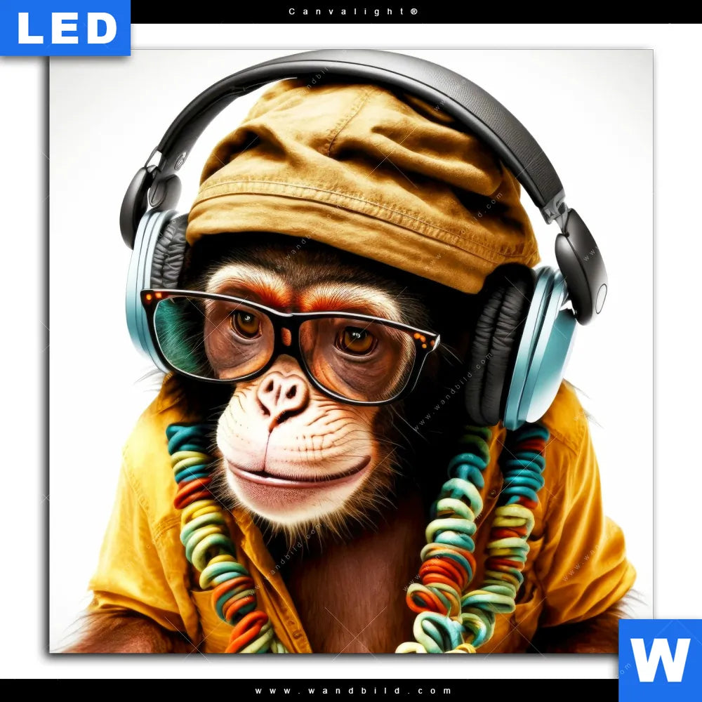 Canvalight® Leuchtbild | Affe mit Kopfhörern & Brille | Quadrat