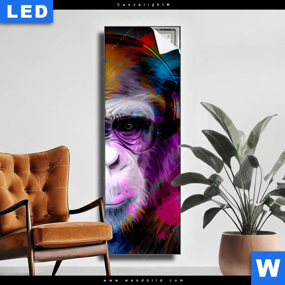 Canvalight® TEX Leuchtbild | Affe Pop Art No.1 | Schmal