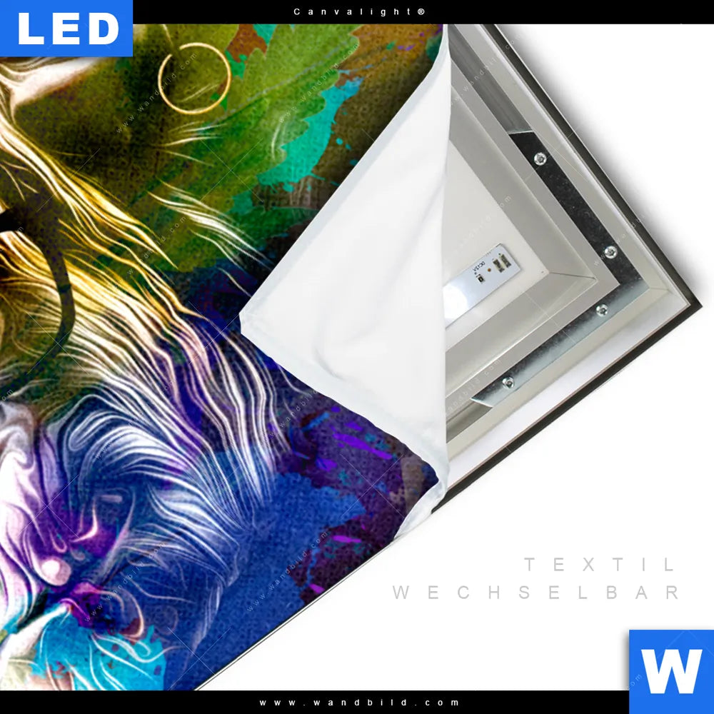 LED-Textilrahmen-Bild mit austauschbarem Tierwelt Textil-Druck (Wechselbild)
