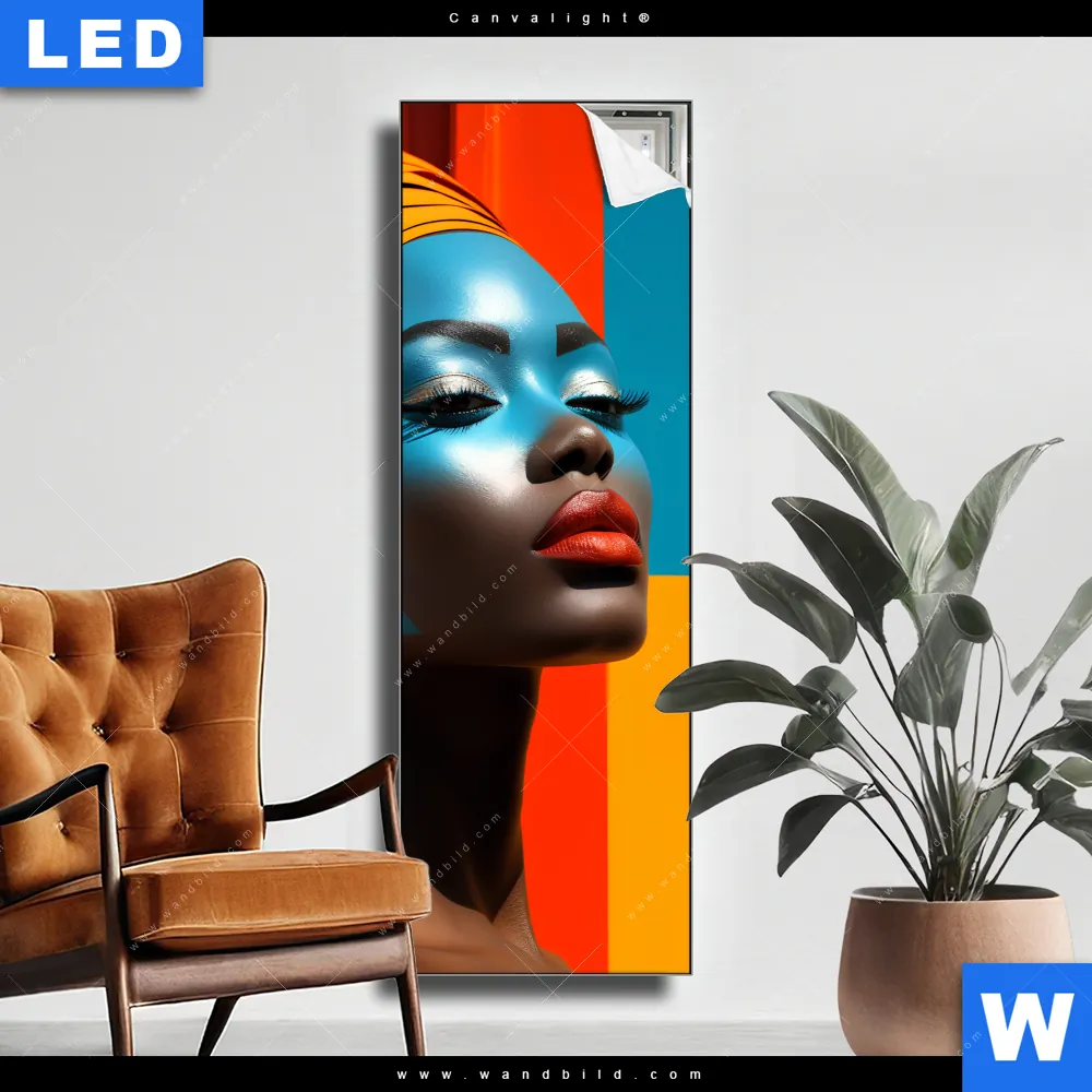 Canvalight® TEX Leuchtbild | Afrikanische Frau mit Turban | Schmal
