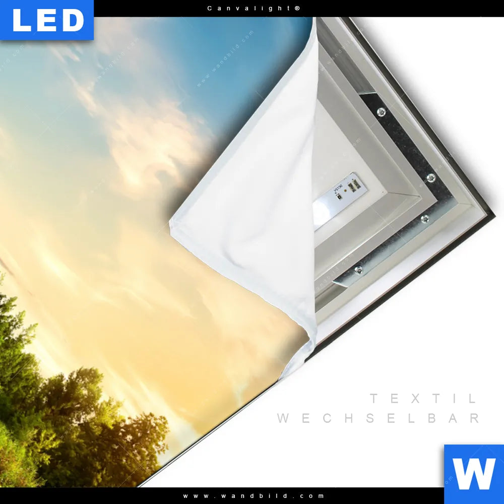 LED-Textilrahmen-Bild mit austauschbarem Landschaften Textil-Druck (Wechselbild)