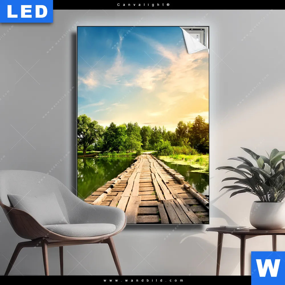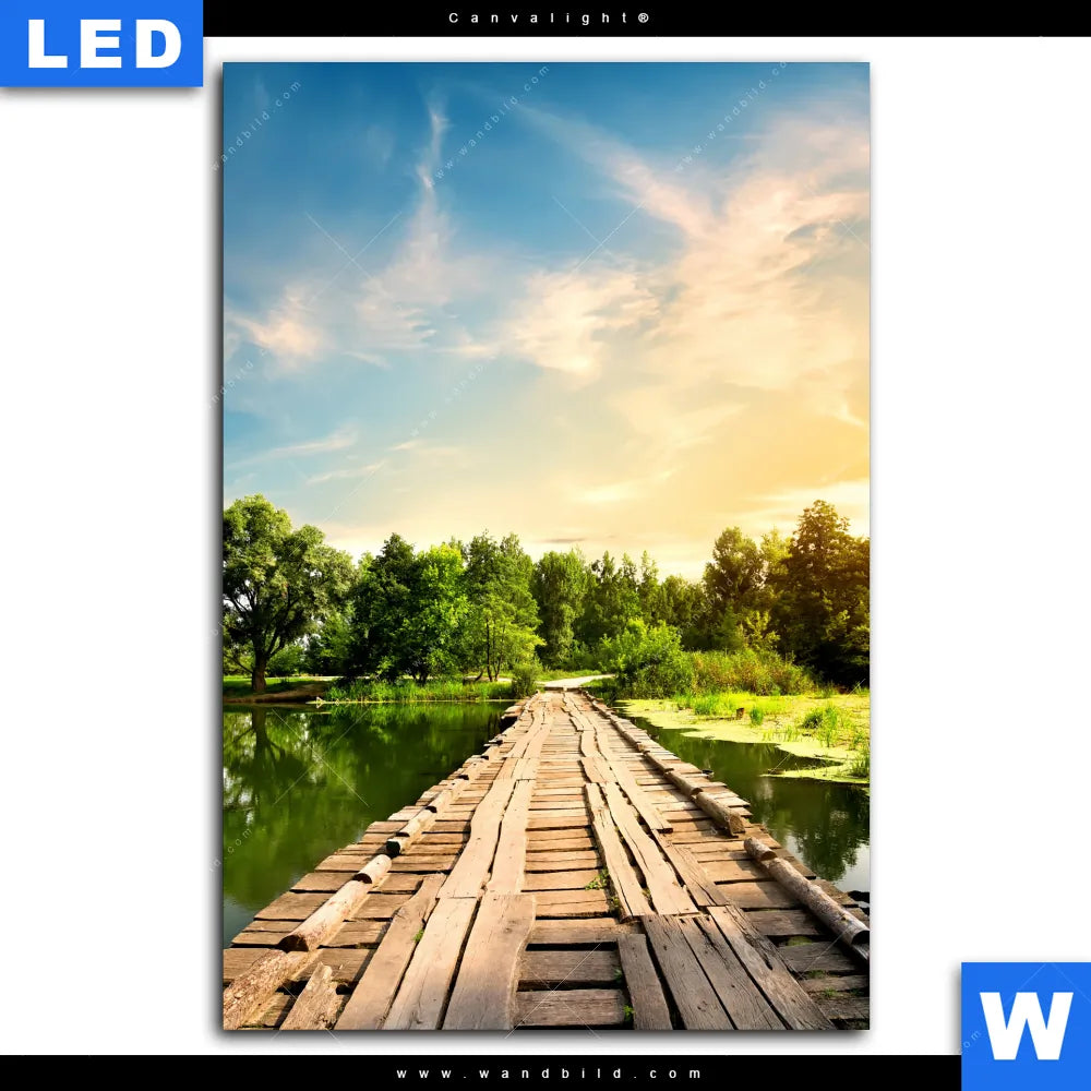 Canvalight® Leuchtbild | Alte Brücke am Fluss | Hochformat