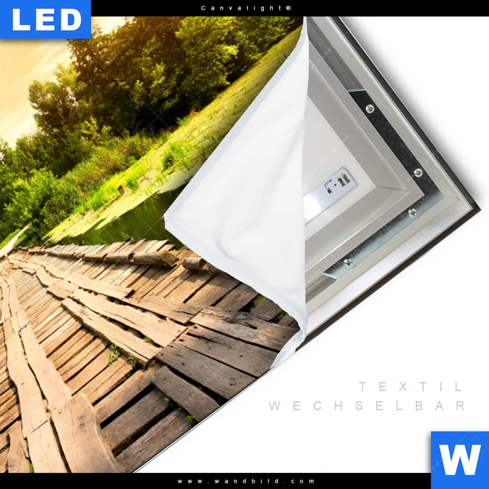 LED-Textilrahmen-Bild mit austauschbarem Landschaften Textil-Druck (Wechselbild)